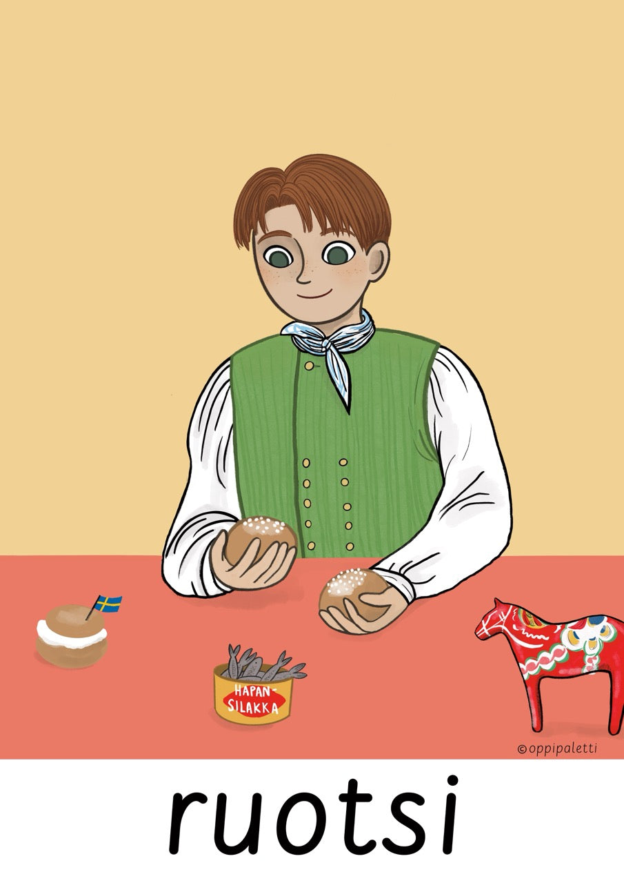 Halusimme hauskan ja opettavaisen tavan toteutukselle. Lapset tykkäävät arvailla, minkä vuoksi korteissa on visuaaliset ja kerronnalliset keinot siihen!